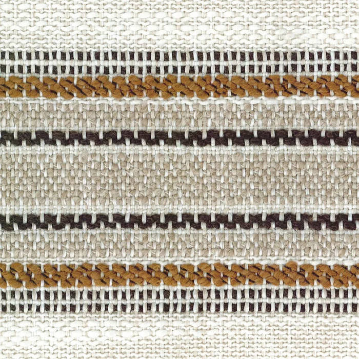 Auf ihm befindet sich eine elegante Streifenmuster auf einer beige-Elfenbein-Basis, ausgeführt in den Farbtönen Gold, Olive und Grau, was an den klassischen Stil belgischer Produktion erinnert. Der Stoff ist äußerst strapazierfähig — bis zu 30.000 Martindale-Cycli, was Langlebigkeit und Farbbeständigkeit auch bei intensiver Nutzung sichert.