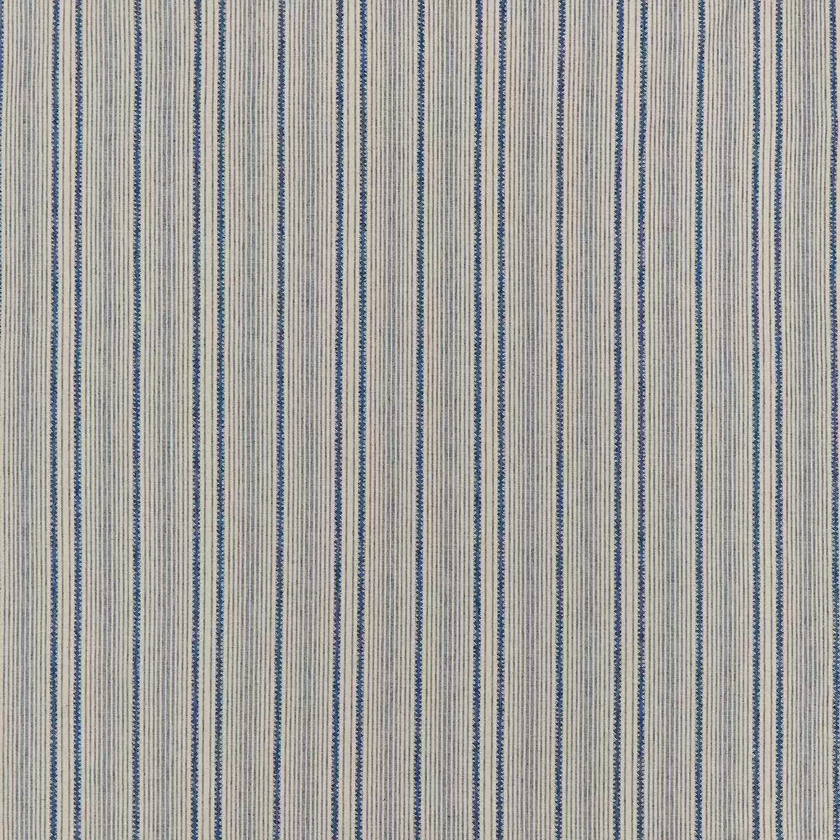 Aldeburgh von Nina Campbell - die doppelte Bindung mit abwechselnd farbigen und leinenartigen vertikalen Streifen erinnert an Inlettgewebe.