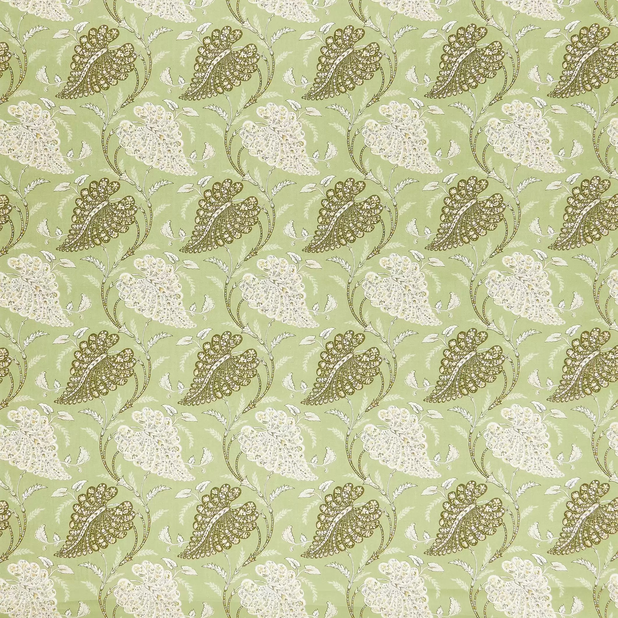 Felbrigg von Nina Campbell London, das Paisleymuster bilden Blätter in Form von Jakobsmuscheln, die abwechselnd in dunklen und hellen Farben in einem nachlaufenden Rapport gedruckt sind.