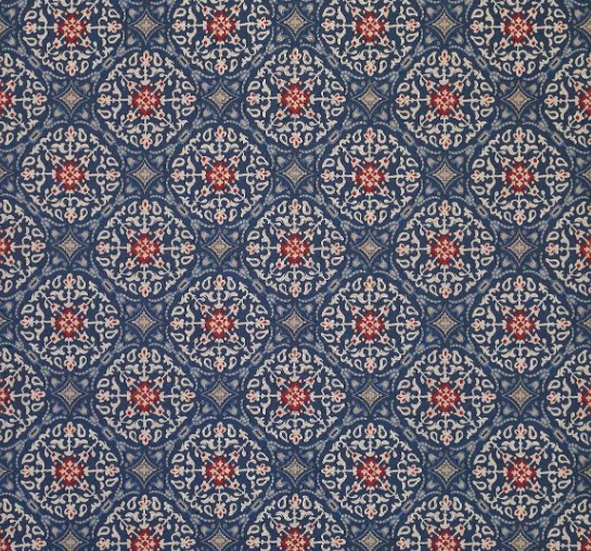 La Moulade von Nina Campbell ist aus Viskose und Polyester gefertigt. Ein aufwändig gewebter Jacquard aus stilisierten Rondellen und kleinen Rauten. Dies ist der Name mehrerer Gemälde von Matisse, die Küstenlandschaften darstellen.