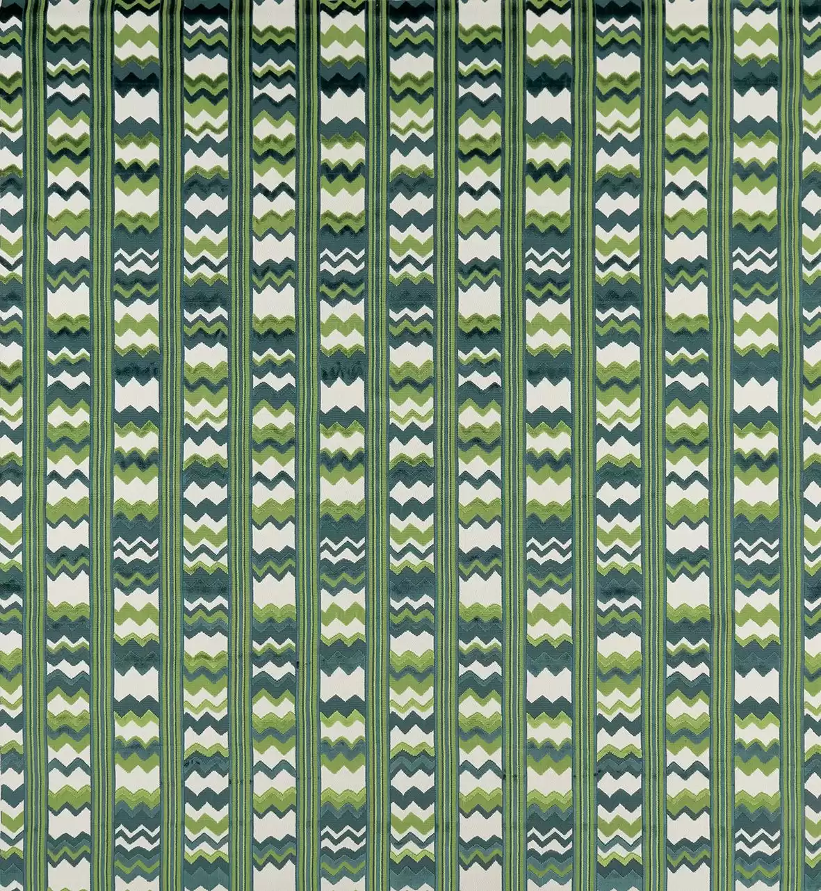 Sebastian von Nina Campbell - Horizontale Zick-Zack-Streifen aus geschlungenem und geschnittenem Florsamt sind in einem vertikalen Streifen angeordnet. Sebastian Flyte ist eine der Hauptfiguren des Romans.