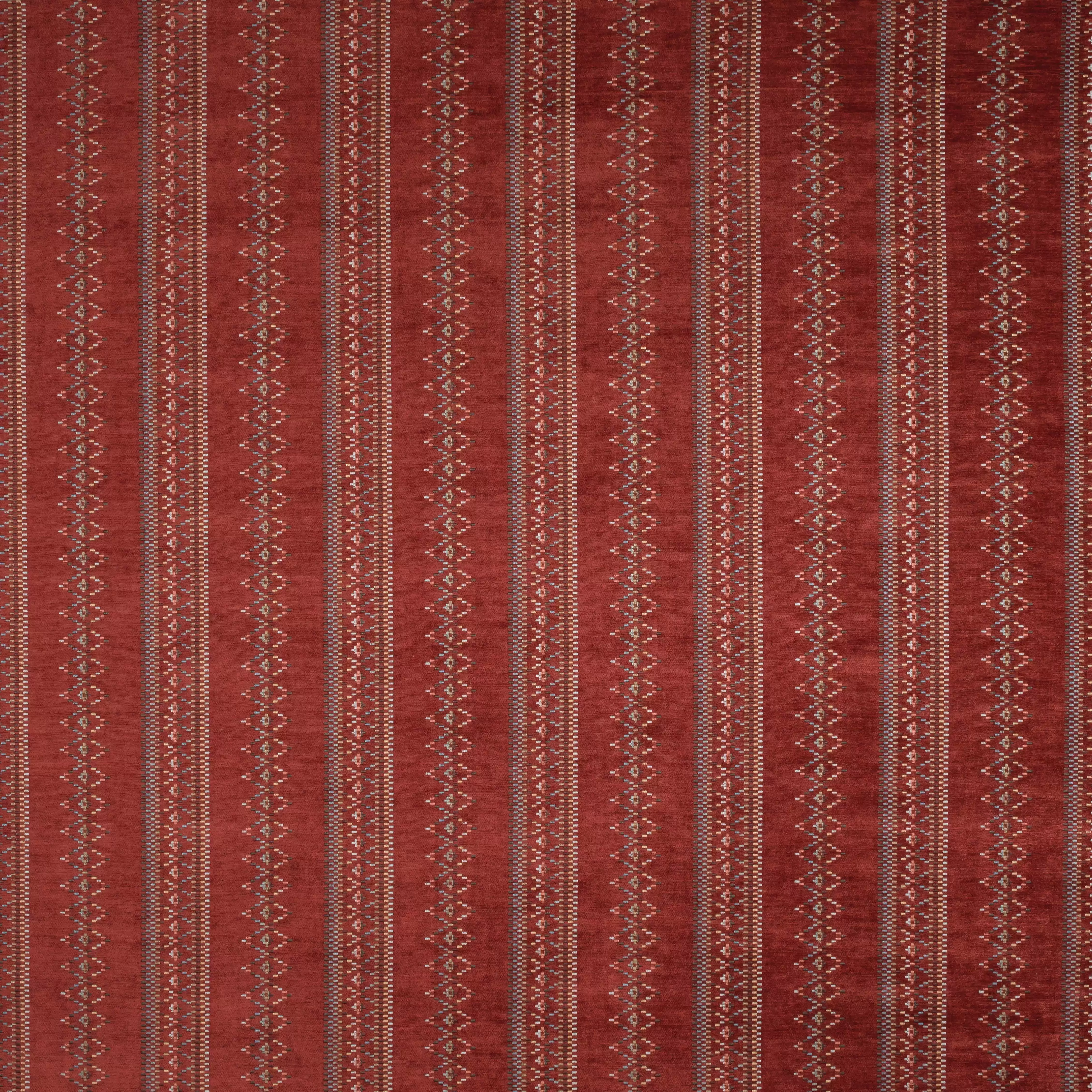 Ein weiches Chenille-Gewebe mit einem mehrfarbigen Streifen aus Rautenformen.