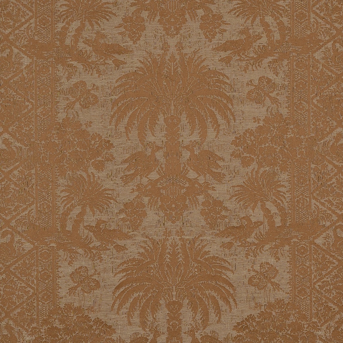 Inspiriert vom venezianischen Stil, erzählt dieser Damast die Geschichte von Reisen in die Weiten des Mittelmeers. Die goldenen Töne, die mit einer Seidenkette verbunden sind, zeigen Palmen und verträumte Vögel, die an das Märchen von Tausend und einer Nacht erinnern. Zum Stoff Alexandria bietet Nobilis Paris eine passende Textil-Tapete an.