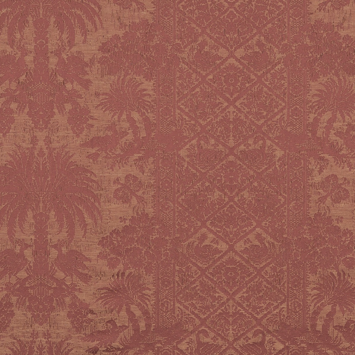 Inspiriert vom venezianischen Stil, erzählt dieser Damast die Geschichte von Reisen in die Weiten des Mittelmeers. Die goldenen Töne, die mit einer Seidenkette verbunden sind, zeigen Palmen und verträumte Vögel, die an das Märchen von Tausend und einer Nacht erinnern. Zum Stoff Alexandria bietet Nobilis Paris eine passende Textil-Tapete an.