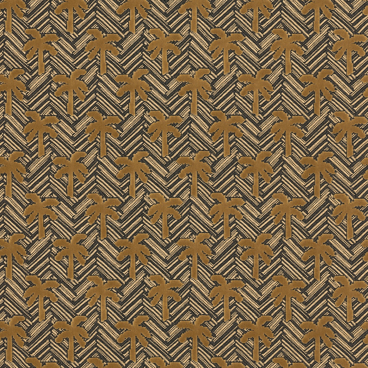 Stil: Velours-Palmenmotiv, Fischgrätstruktur, kontrastreiche Materialien, ikonisches 50er-Jahre-Motiv