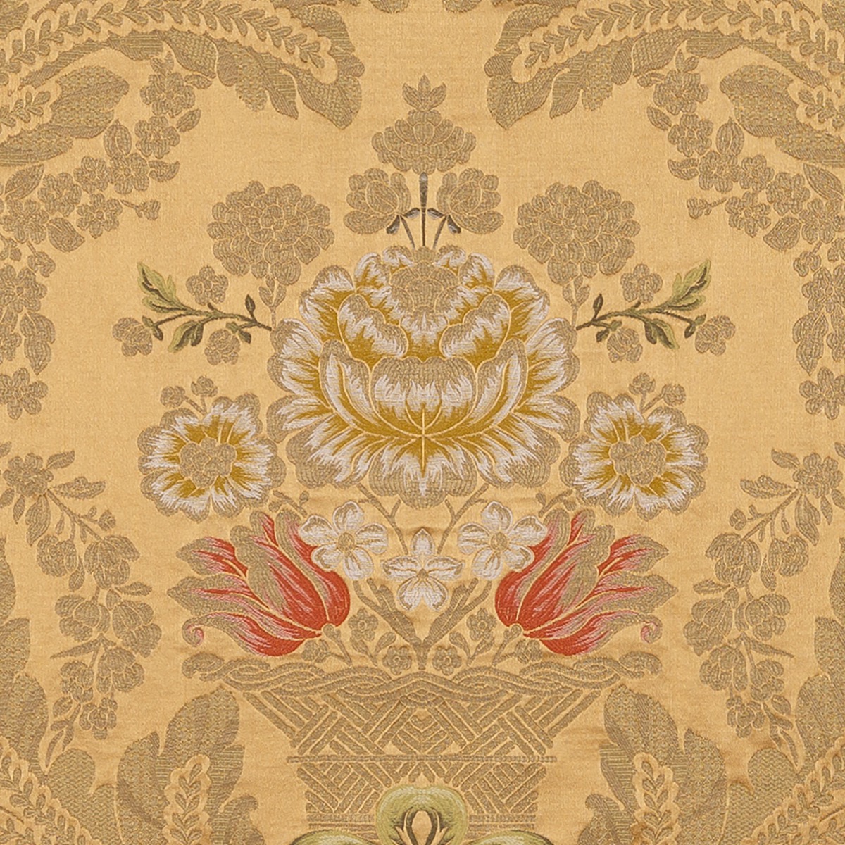 Lorsica setzt das Know-how und die luxuriöse Tradition der Lampas fort und bietet ein Bouquet im Stil des 17. Jahrhunderts, das durch eine Reihe von romantischen und kostbaren Farben bereichert wird.