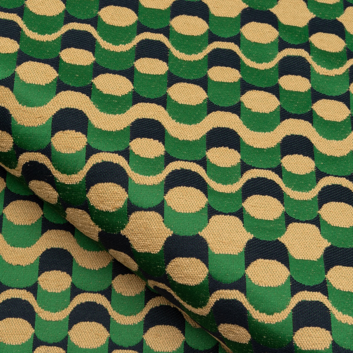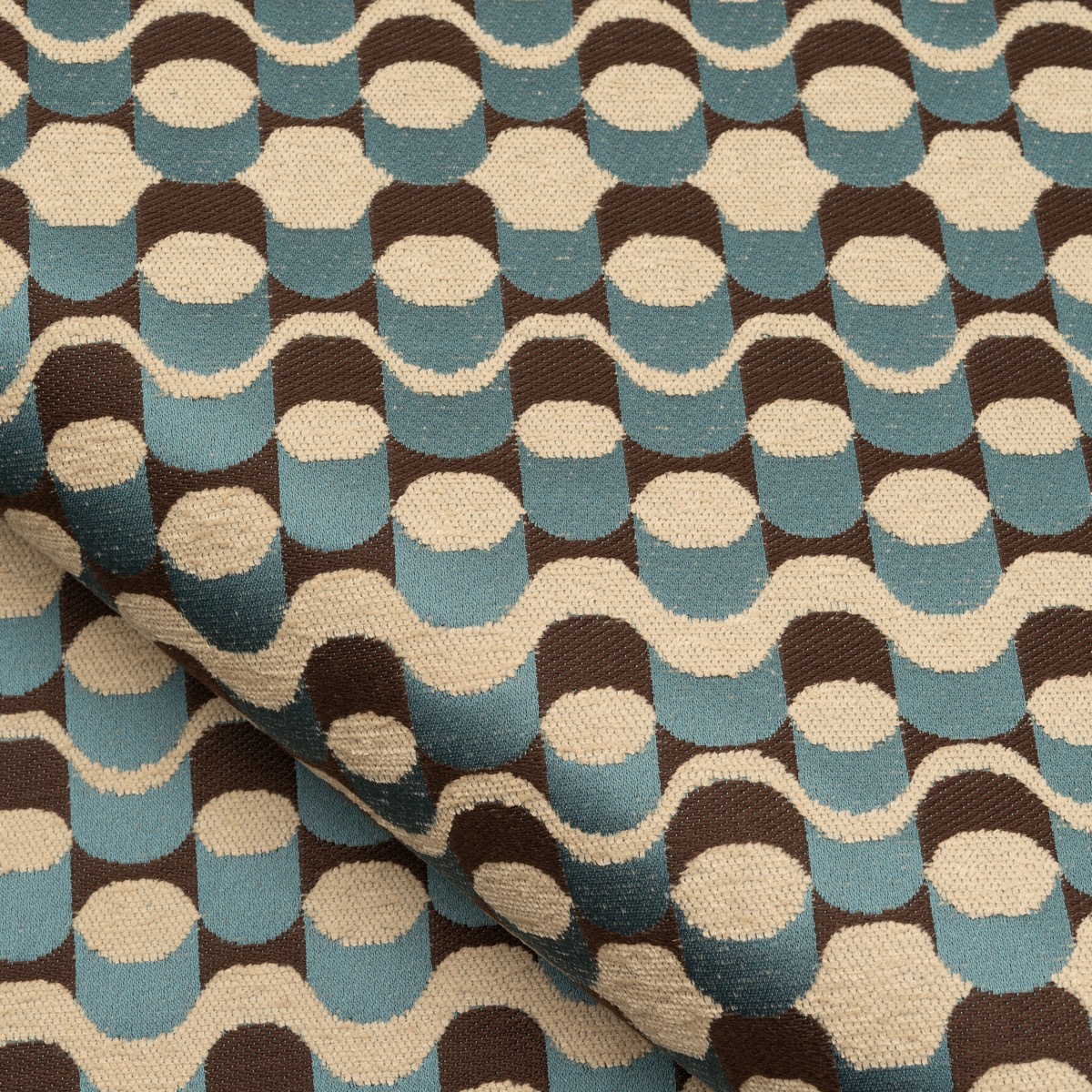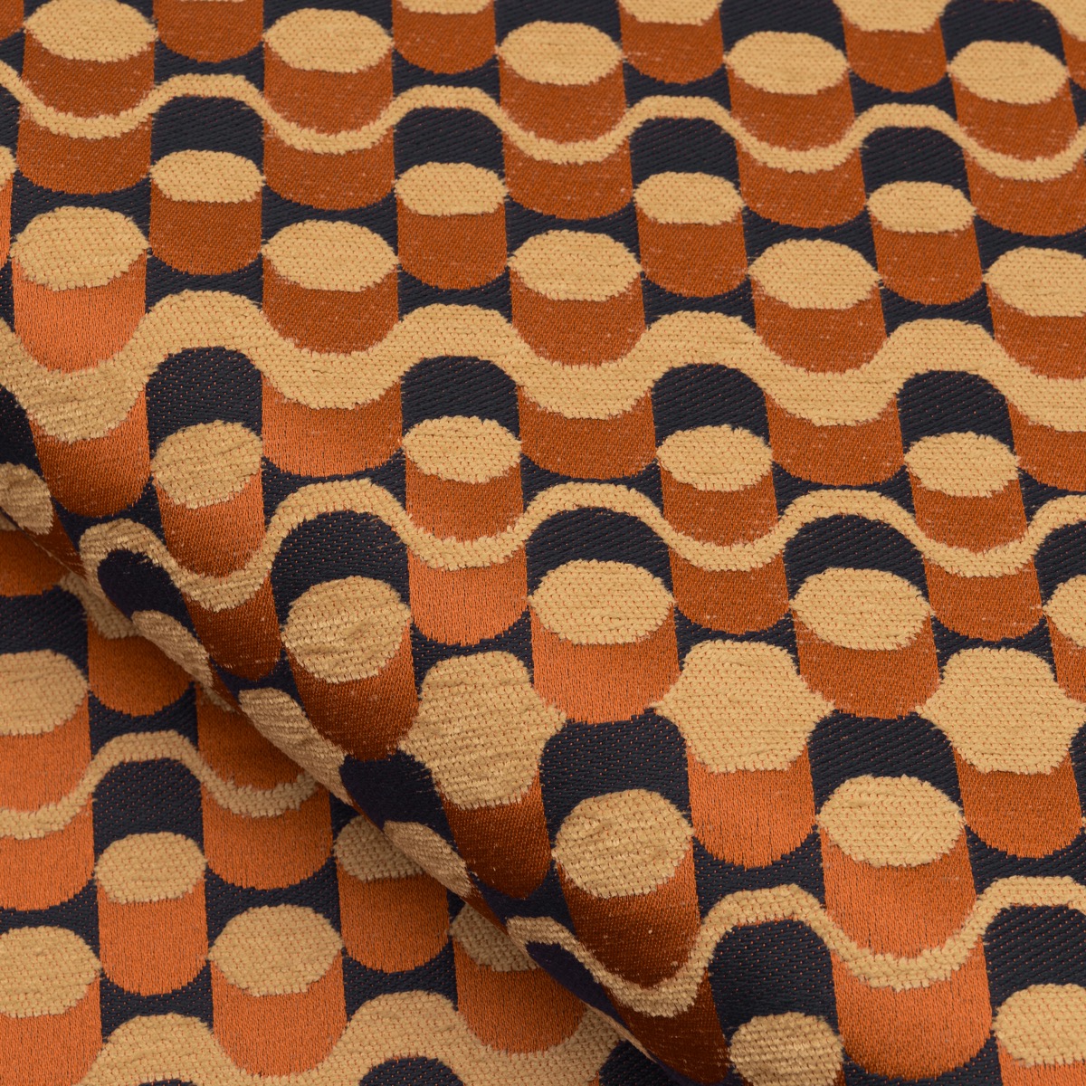 Mira-Jacquard kombiniert ein mattes Chenillegarn und eine satinierte Kette, um ein kleines kontrastreiches Muster im Krawattenstil zu zeichnen.