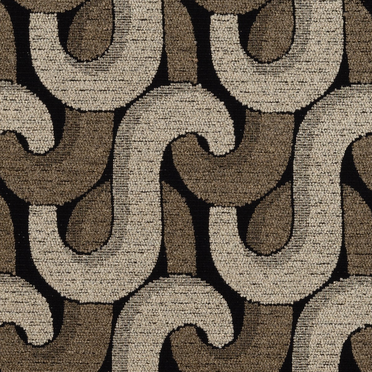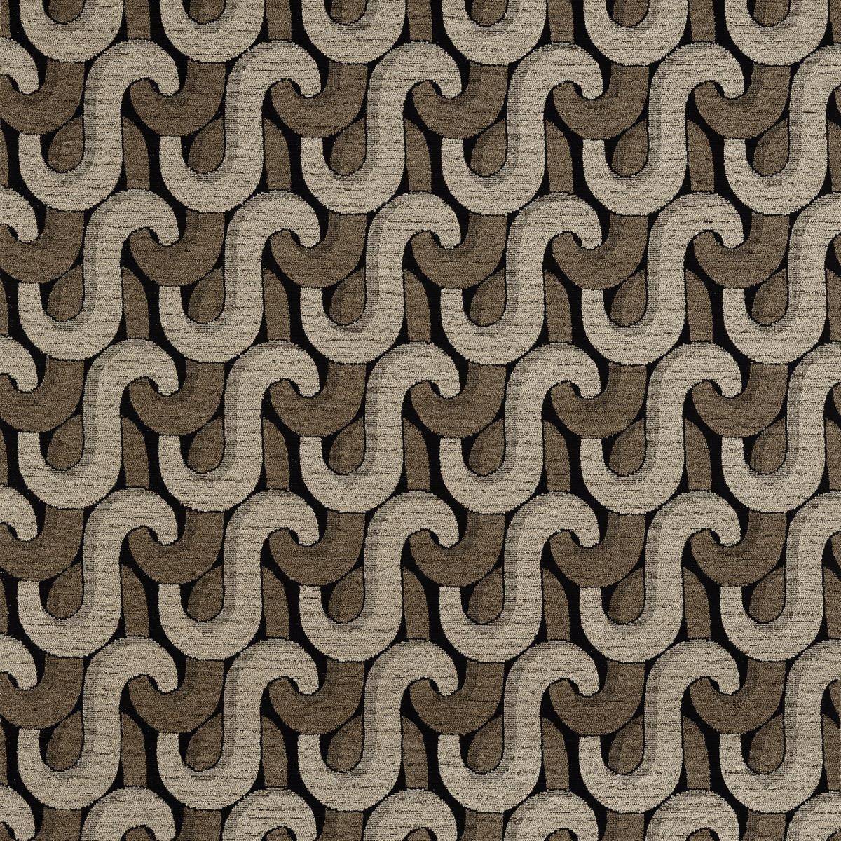 Auf diesem von den Siebzigern inspirierten Jacquard verflechten sich die geschwungenen Linien und werden lebendig. Der farbige Bouclé kontrastiert mit dem eleganten schwarzen Satingrund.