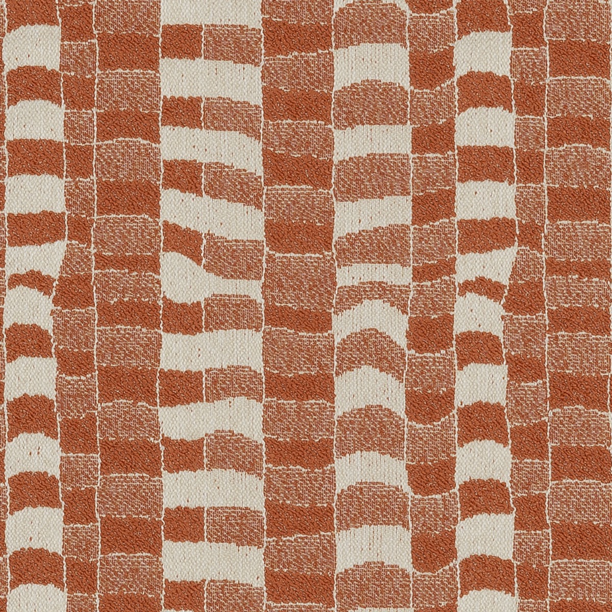 Promenade ist ein Jacquard-Stoff für den Außenbereich, der an die Kacheln eines Swimmingpools erinnert, die durch die Wellen des Wassers verzerrt werden. Ein Bouclé-Garn verleiht den 8 frischen Farben Textur und Weichheit.