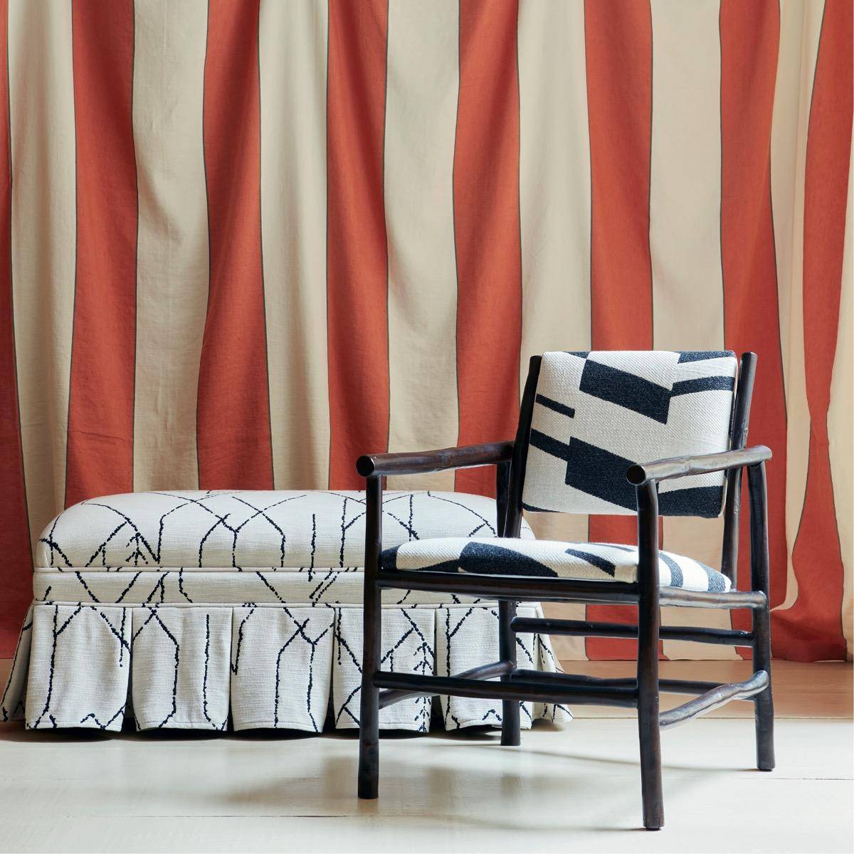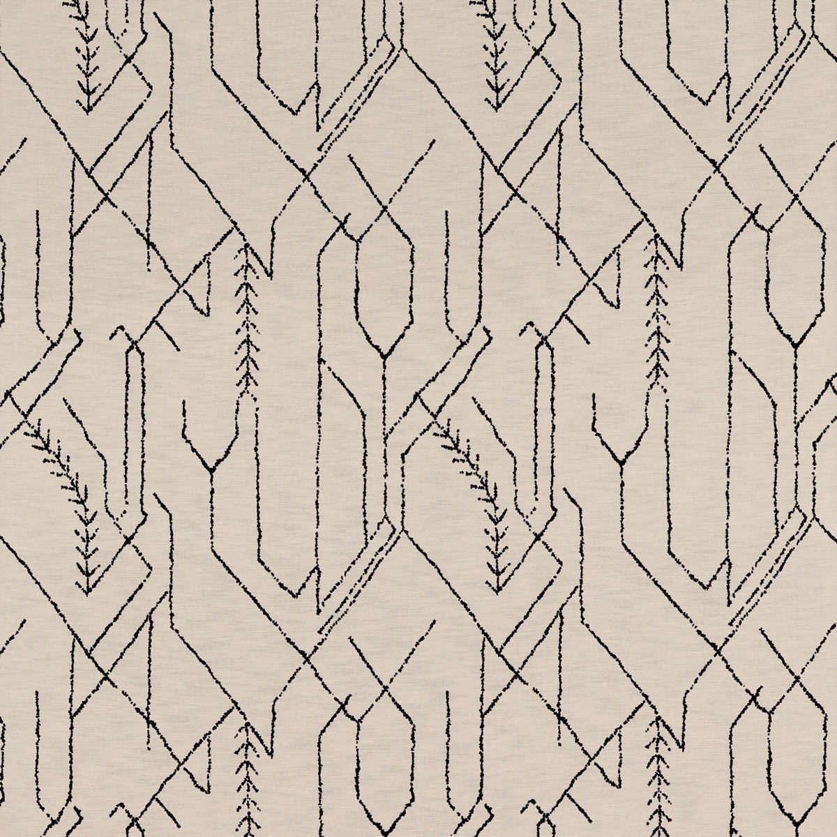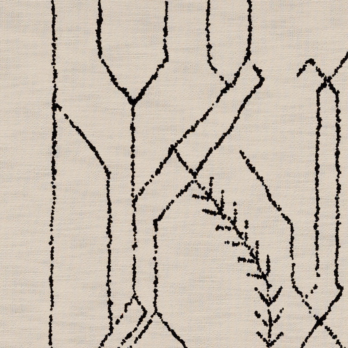 Der vom Berber inspirierte, geprägte Jacquard Sijada spielt mit gebrochenen geometrischen Mustern und zeichnet ein Netz aus dunklen Linien auf hellem Grund, wodurch ein entschieden zeitgenössischer Stoff entsteht.