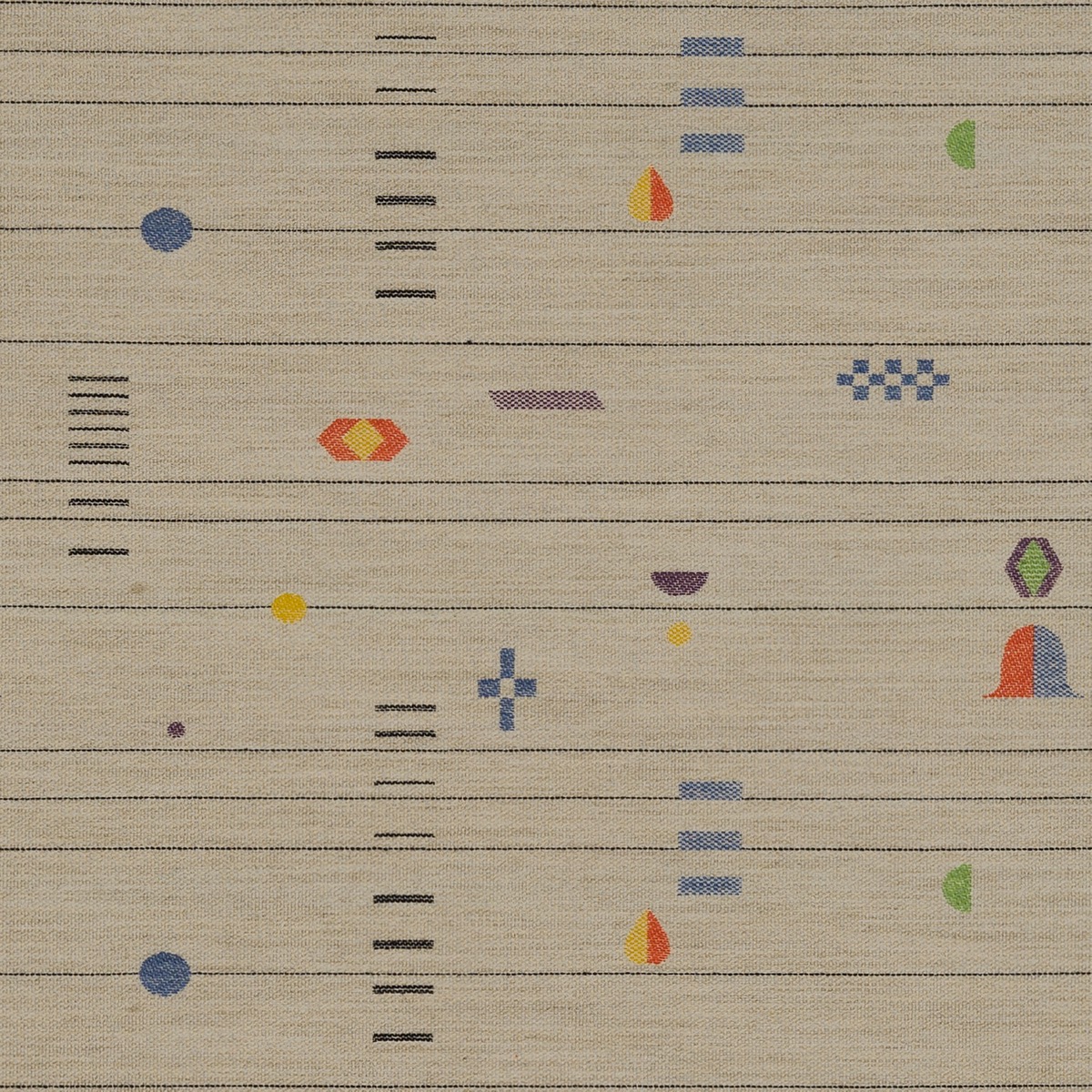 „Sven“ ist ein Wollteppich, der das ikonografische Repertoire der traditionellen schwedischen Kilim-Teppiche, auch Rollakan genannt, erforscht.