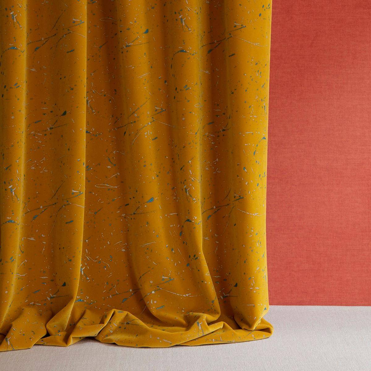Zweifärbig auf einem Fond in strahlenden und zeitgemäßen Farben bedruckt, ist das Tachist-Motiv eine Hommage auf die „drip paintings“ von Jackson Pollock. Velours Fever wird mit Rhythmus und Kühnheit Möbel und Räume beleben.