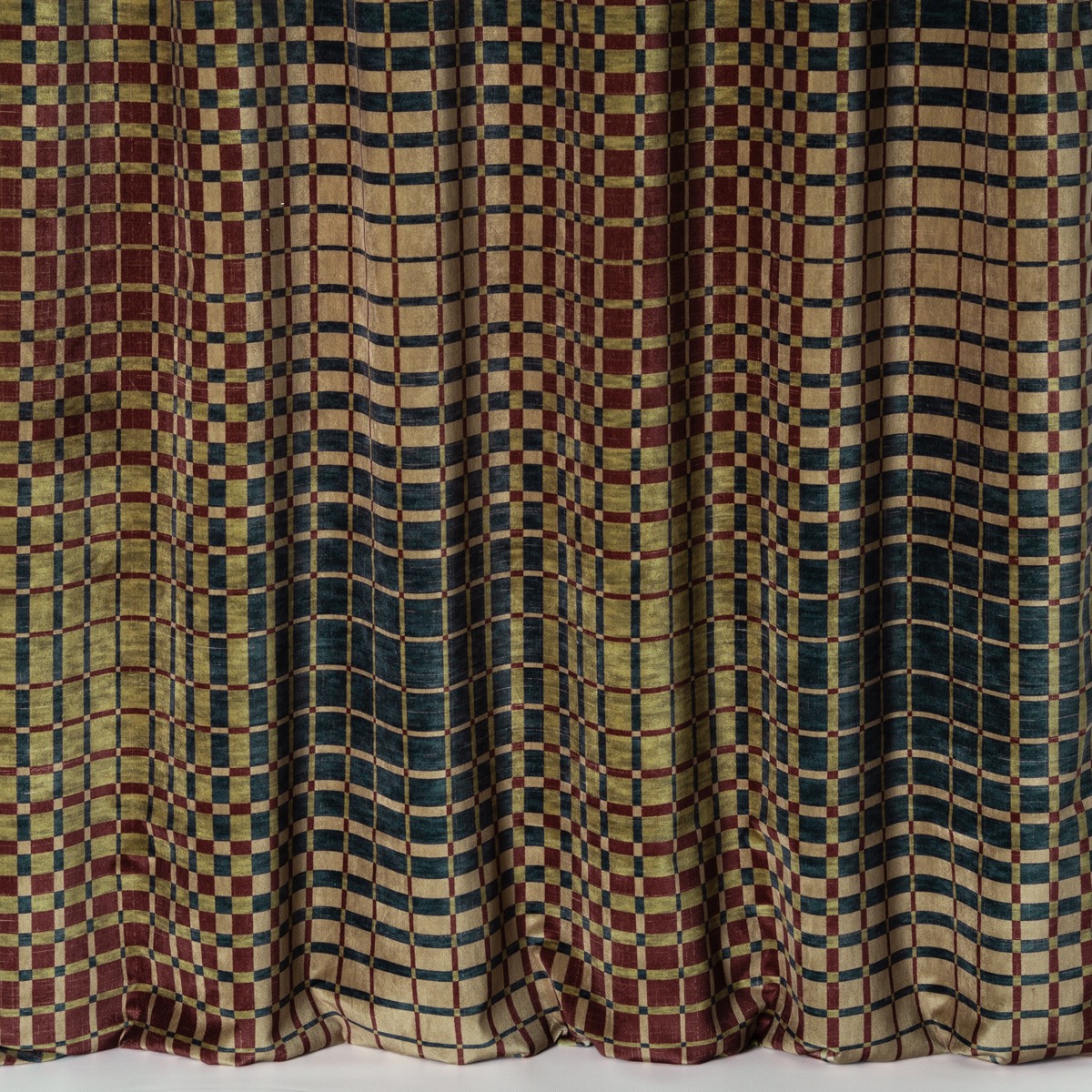 Der von der Pop-Art inspirierte Velours Vasa ist ein Samt mit Karodruck und dezenter Patina, der in tiefen Farbtönen dekliniert ist.