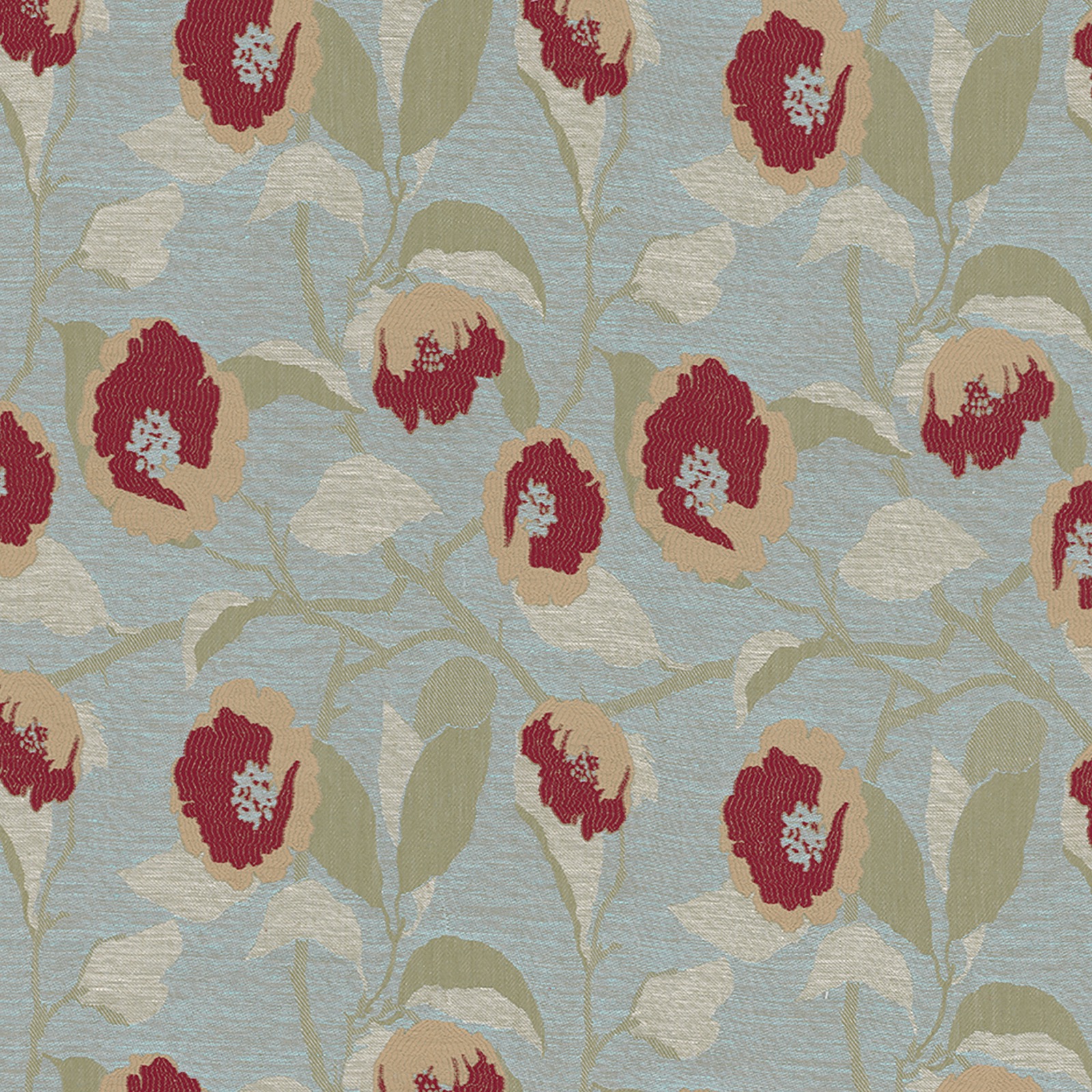 Virginia ist ein erhabener Leinenjacquard mit einem üppigen Griff und einem tadellosen Faltenwurf, der mit einem kräftigen Pflanzendekor verziert ist, das von den stilisierten und abgeschwächten Farben der Bloomsbury Group des 20. Jahrhunderts beeinflusst ist.