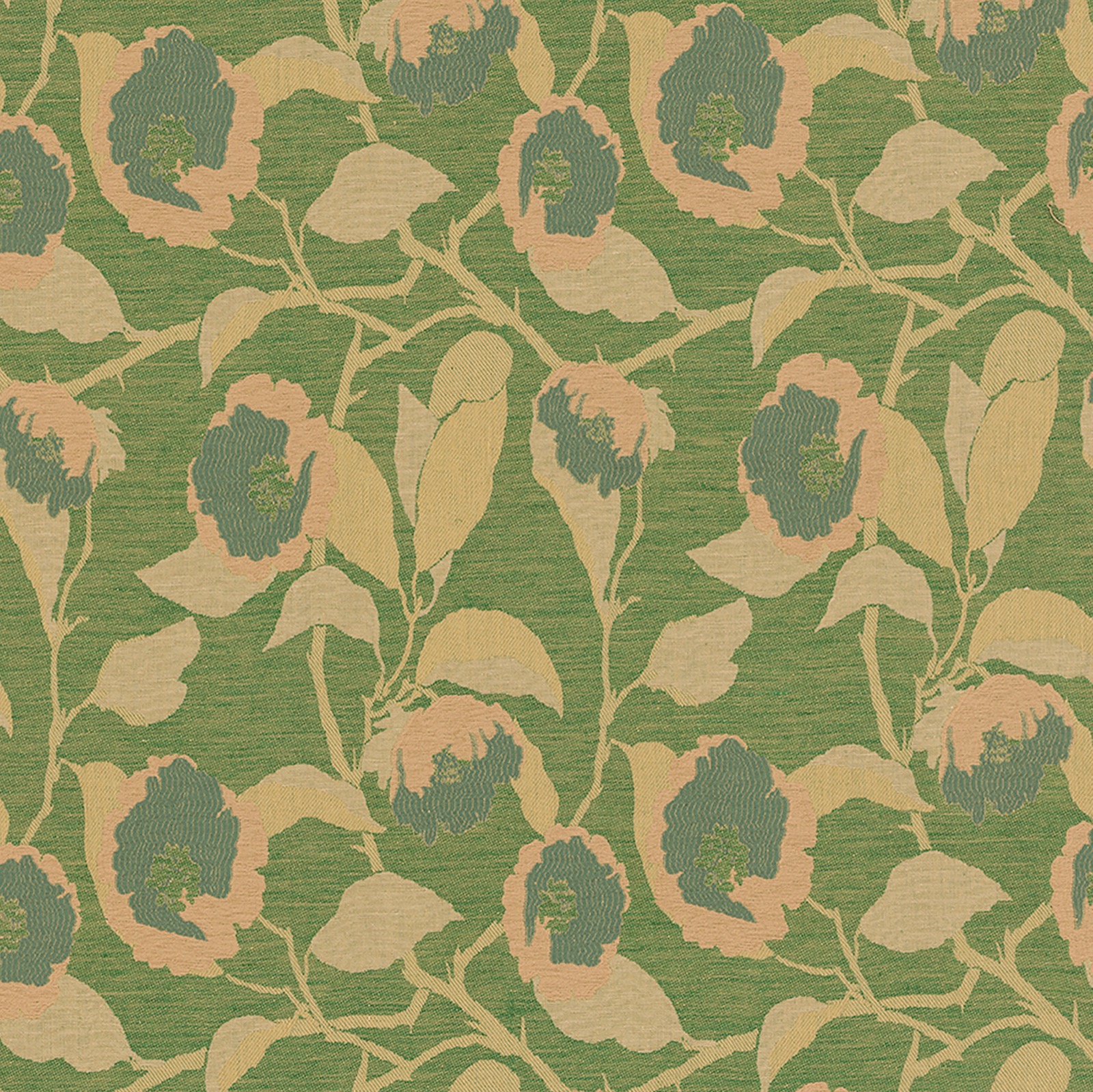 Virginia ist ein erhabener Leinenjacquard mit einem üppigen Griff und einem tadellosen Faltenwurf, der mit einem kräftigen Pflanzendekor verziert ist, das von den stilisierten und abgeschwächten Farben der Bloomsbury Group des 20. Jahrhunderts beeinflusst ist.