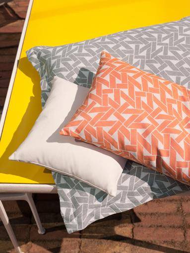 Durch die identischen Farbstellungen lässt sich Positano harmonisch kombinieren mit weiteren Outdoor-Stoffen wie Rimini, Nizza-Stripe, Nizza-Check und Portofino.