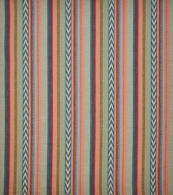 Das vertikale Streifenmuster wird durch eine Vielzahl feiner, stichartiger Details aufgelockert und erhält dadurch eine lebendige, strukturierte Optik. Diese raffinierte Gestaltung verleiht dem Stoff Tiefe und sorgt für eine stilvolle Wirkung in unterschiedlichsten Wohnkonzepten.
