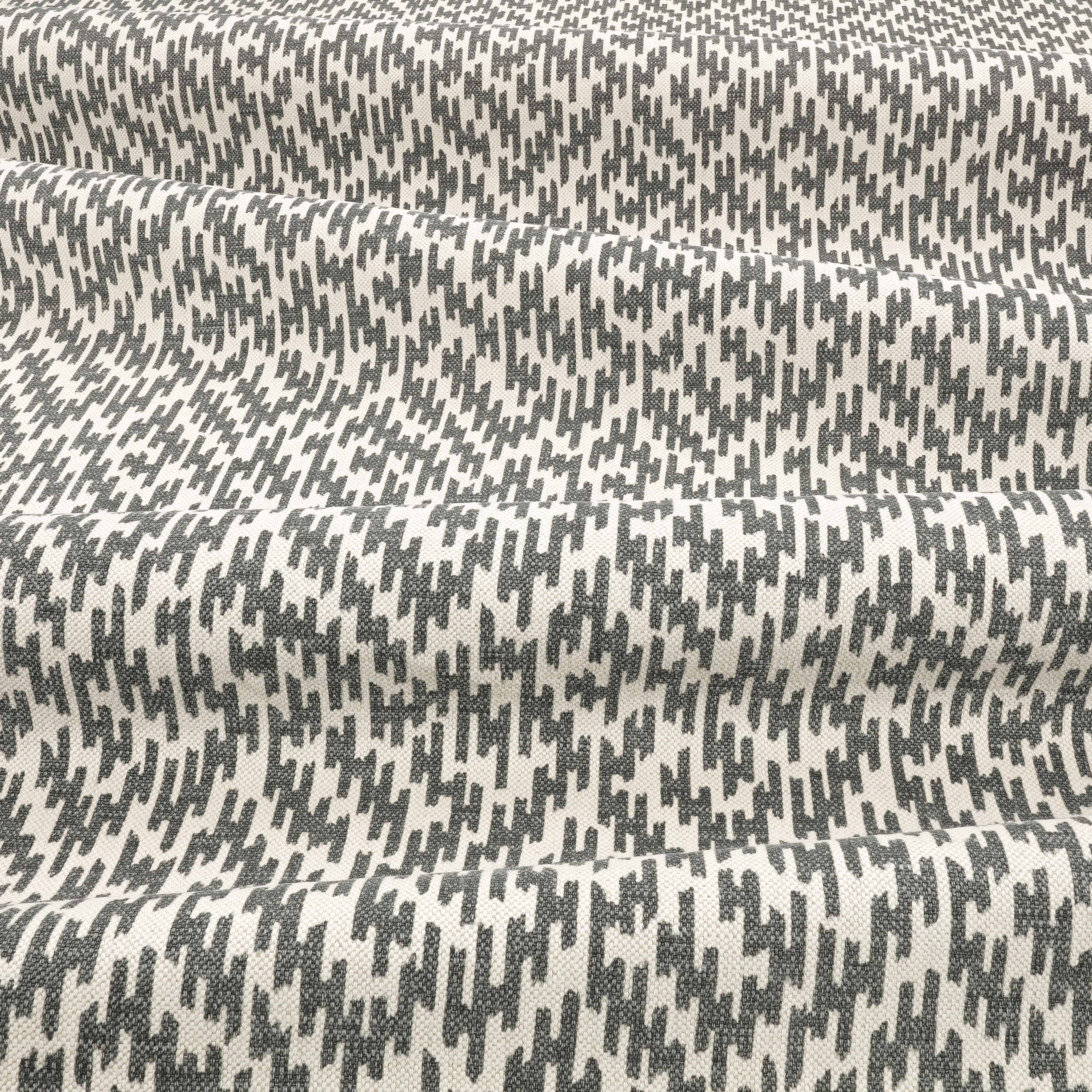 Isala, gedruckt auf gebürstetem Baumwoll-Leinen mit einem wunderbar weichen Finish, präsentiert eine unregelmäßige, detaillierte Geometrie, die sowohl in Bezug auf das Muster, die Farbe als auch die Textur sehr abwechslungsreich ist.