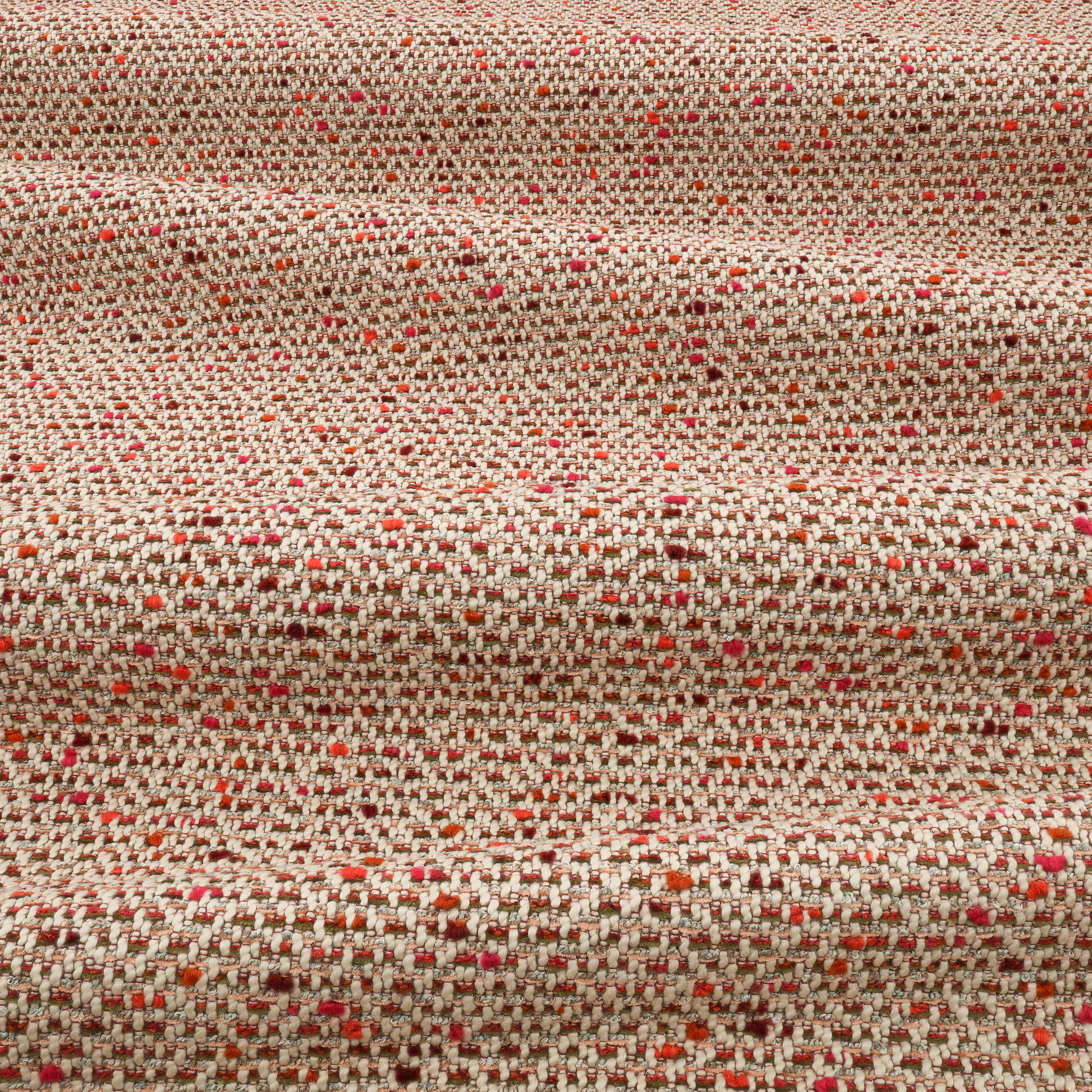 Ein exquisiter, grober Stoff, der eine perfekte Balance zwischen intensiver Textur und lebhaften Farben bietet. Eine verspielte Mischung aus üppigem Bouclé, luxuriöser Chenille und weichen Effektgarnen schafft wunderschöne Details mit raffinierten Farbakzenten, die durch den Stoff tanzen.