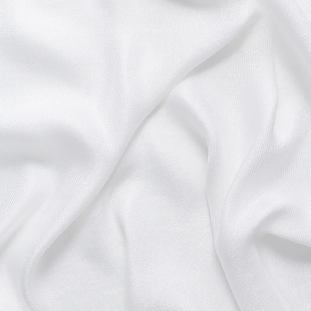 Dadina von Sahco ist ein weiches und sinnlich transparentes Textil mit dem mühelosen, dezenten Glamour von Armani aus den 90er Jahren. Dadina kombiniert natürliches Leinen mit glänzendem Viskosegarn, das ihm einen dezenten Schimmer verleiht. Die Twillstruktur hat zwei Identitäten, auf der einen Seite liquide und auf der anderen Seite eher grafisch. Satte tonale Effekte aus der schwarzen Kette definieren leuchtendes Blau, Kaviarschwarz und Braun, während Schneeweiß, Champagner und Silberweiß zu den neutralen Mélange-Effekten zählen.