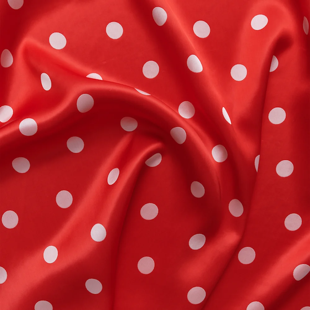 Ein Polka-Dot-Design, das mit subversivem Glamour schimmert. Deedee verwandelt den klassischen grafischen Polka Dot in einen schweren Vorhangstoff mit einem geschmeidig glatten Griff. Durch das Weben wird das Punktmuster belebt und erzeugt einen Schatteneffekt auf dem einfarbigen Hintergrund, sodass der Stoff wendbar ist. Schwarz mit silbriger Note, Knallrot und leuchtendes Blau strahlen 50er-Vibes aus, während pudriges Rosa, Austern- und Sandtöne sowie Waldgrün für einen dezenten Chic sorgen.