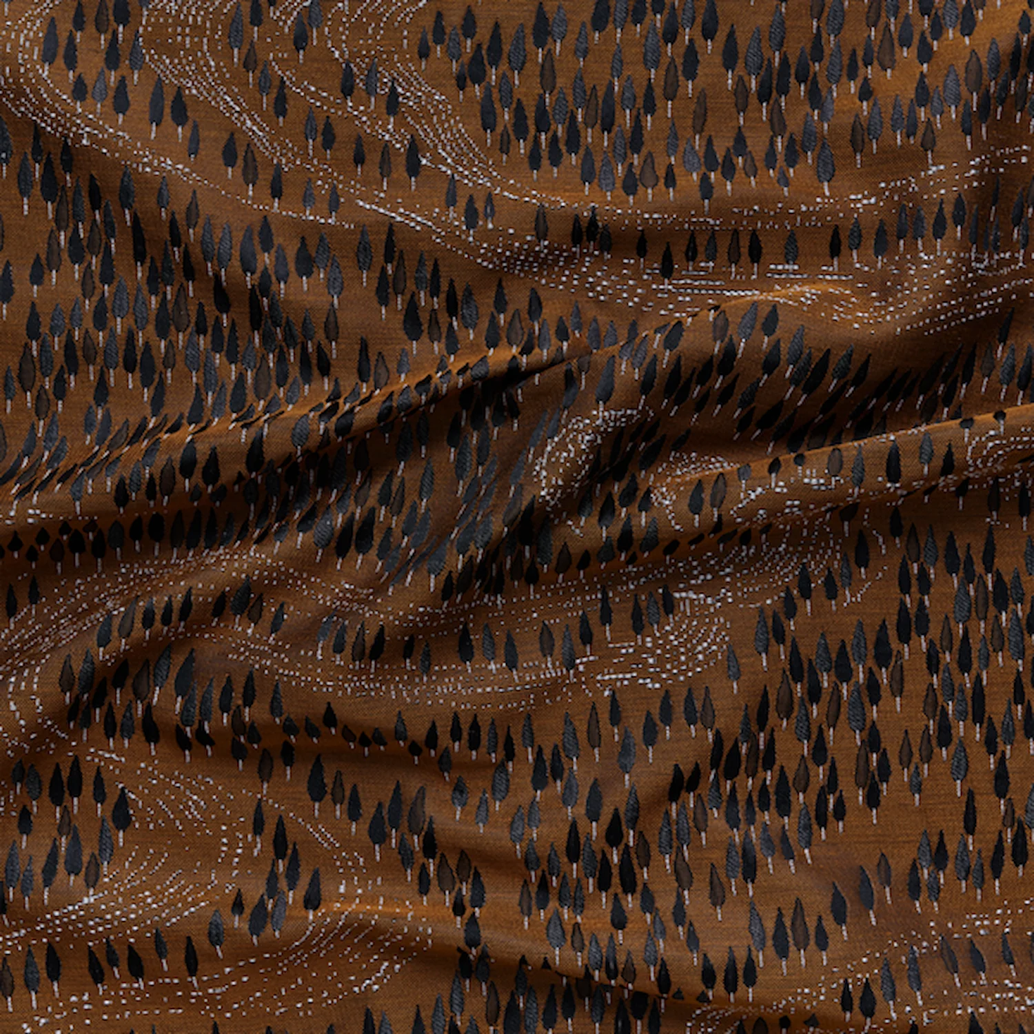 Eine unterschwellige Landschaft mit kunsthandwerklichen Strukturen. Sariska ist ein texturierter Jacquard mit Strukturen, die an ein Muster von Bäumen und Samen erinnern. Verschiedene Bindungen auf der Oberfläche zeigen das meisterliche Geschick indischer Webkunst. Die Palette ist stimmungsvoll in Coffee Bean, Misty Purple und Golden Caramel gehalten oder eher feminin und tonal mit Honey Rose, Icy Rose, warmem Grau und Mint Sorbet.