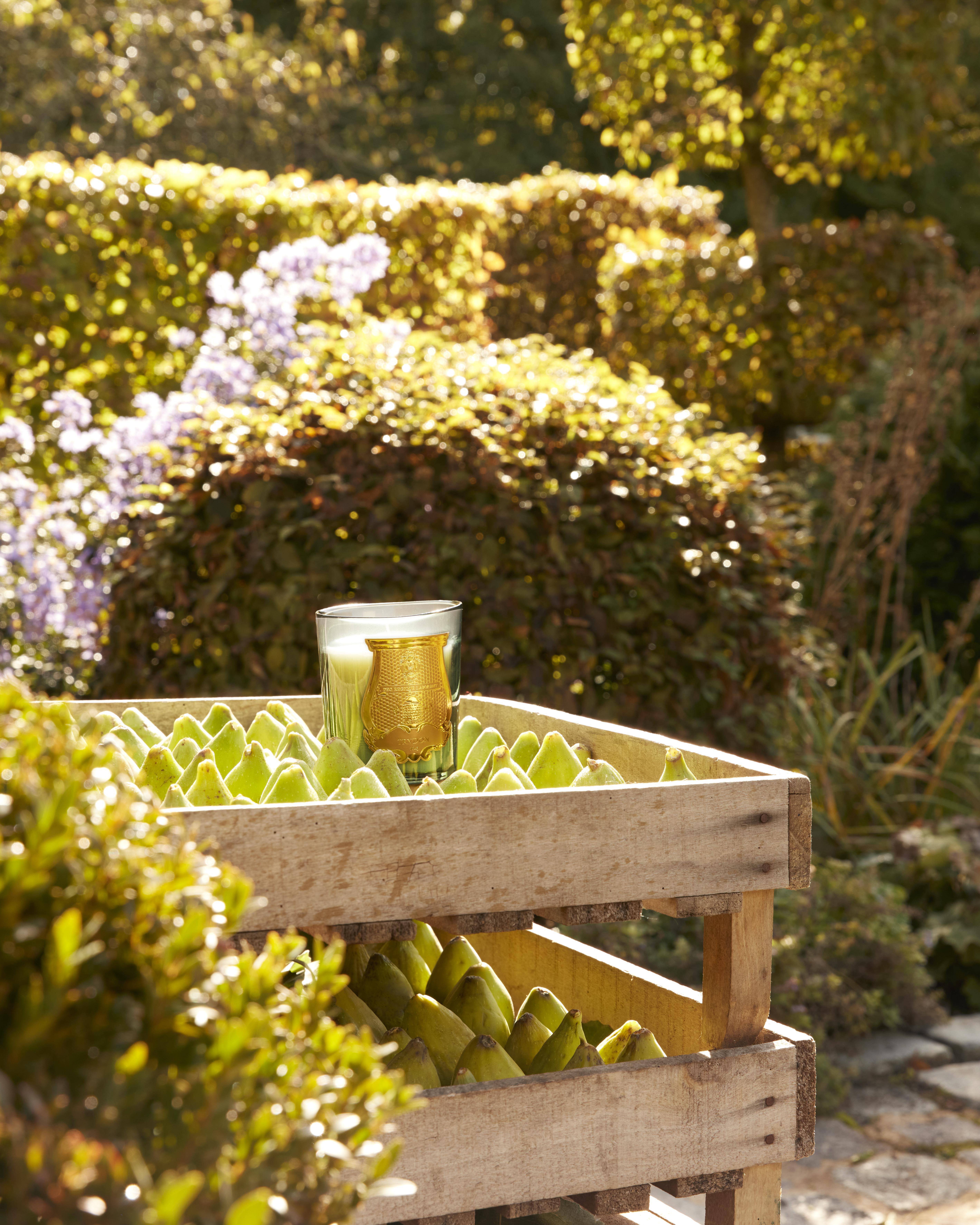 Mit der Figuerie Duftkerze präsentiert das Haus Trudon eine außergewöhnliche Interpretation der königlichen Feige – pflanzlich, holzig und von faszinierender Tiefe. Für seine Debütkollektion als Kreativdirektor ließ sich Hugo Ferroux von der Geschichte des französischen Hofes und dem Gemüsegarten Ludwigs XIV. inspirieren.