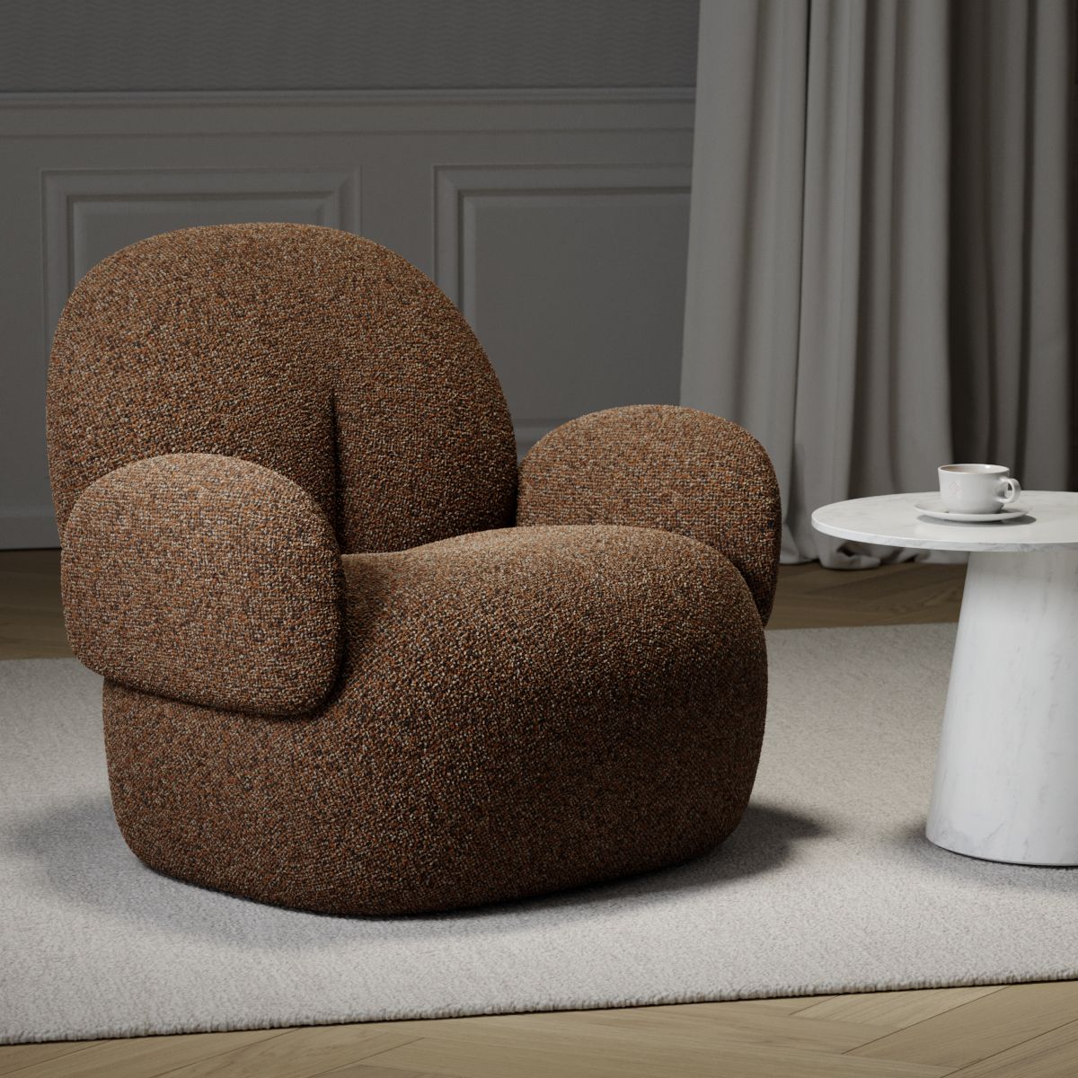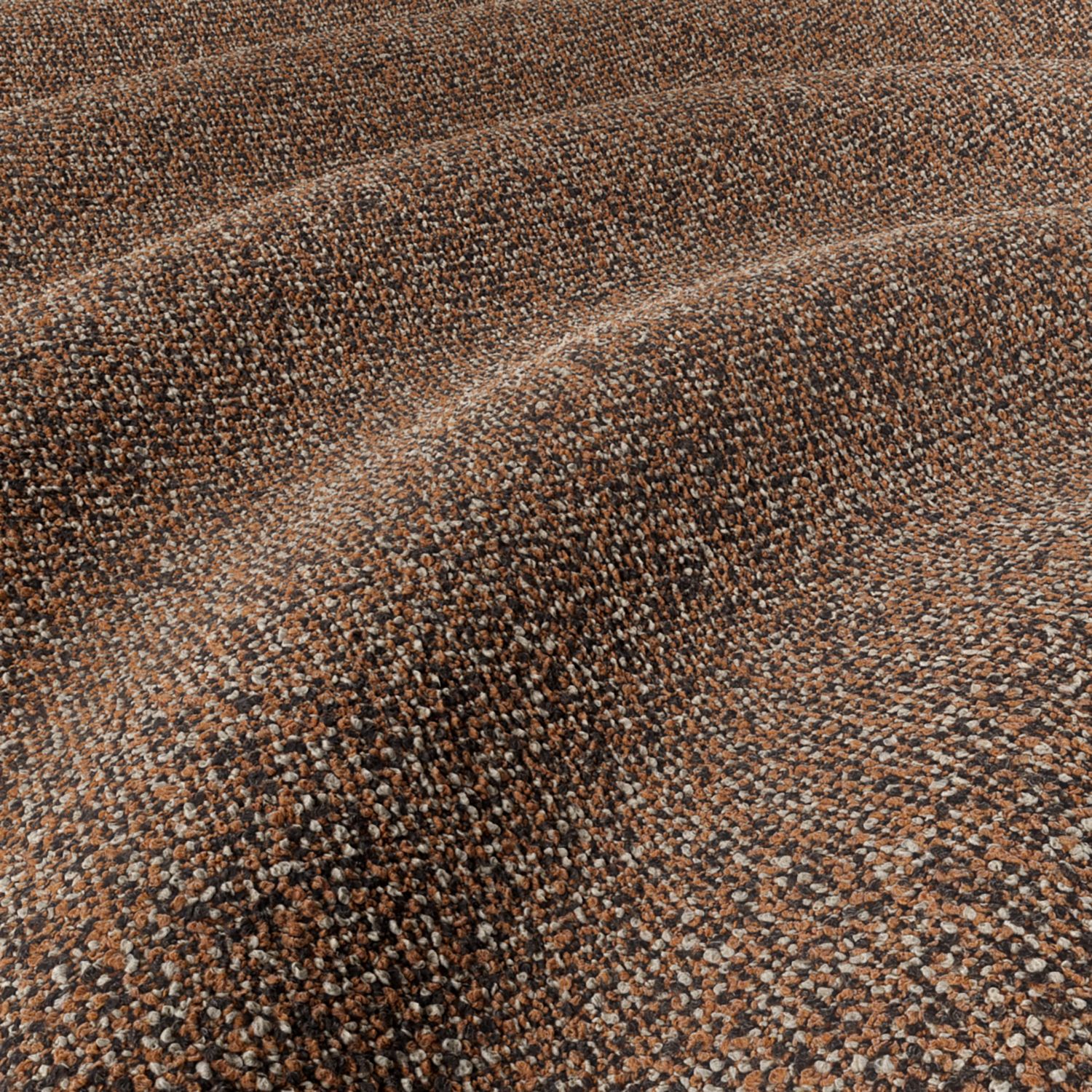 Die besondere Bouclé-Oberfläche entsteht durch die raffinierte Kombination von Garnen in drei harmonisch abgestimmten Farbnuancen. In Kette und Schuss kunstvoll miteinander verwoben, erzeugen sie eine lebendige Melange mit beeindruckender Tiefe und einer charakteristischen, wolligen Textur.