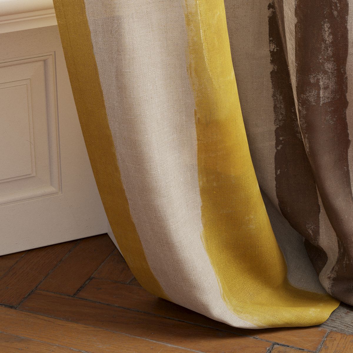 Das Ergebnis ist ein Stoff, der sich wie ein Kunstwerk auf Leinwand präsentiert – ideal für stilvolle Vorhänge, dekorative Kissen oder besondere Raumakzente. Die natürliche Haptik des Leinens verleiht Crafted Stripe einen hochwertigen, handgemachten Charakter, der jedem Raum Wärme und Persönlichkeit schenkt.