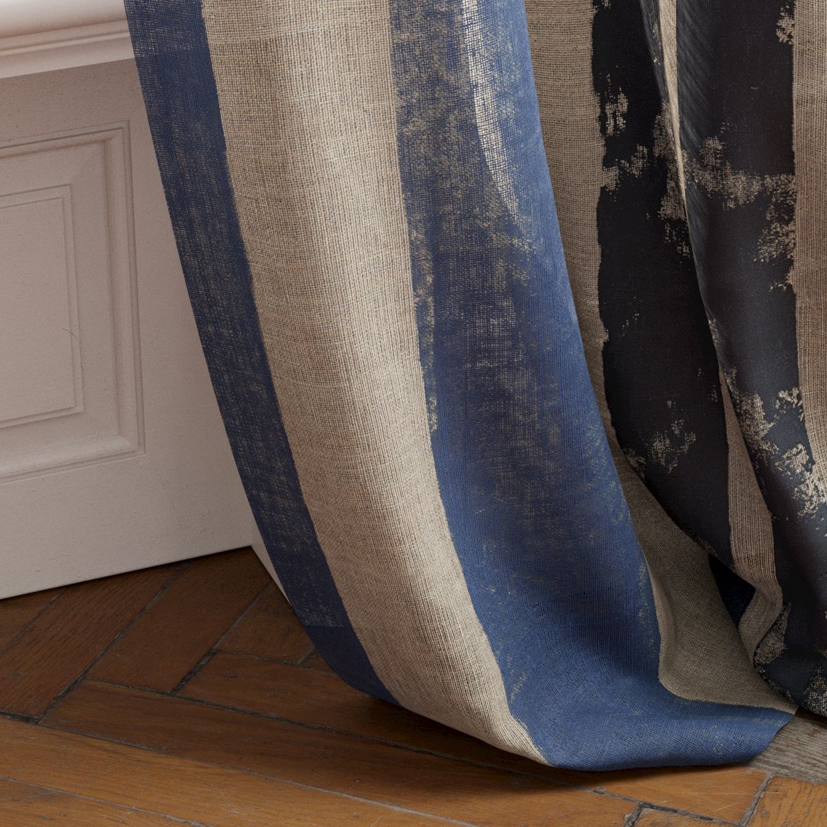 Das Ergebnis ist ein Stoff, der sich wie ein Kunstwerk auf Leinwand präsentiert – ideal für stilvolle Vorhänge, dekorative Kissen oder besondere Raumakzente. Die natürliche Haptik des Leinens verleiht Crafted Stripe einen hochwertigen, handgemachten Charakter, der jedem Raum Wärme und Persönlichkeit schenkt.