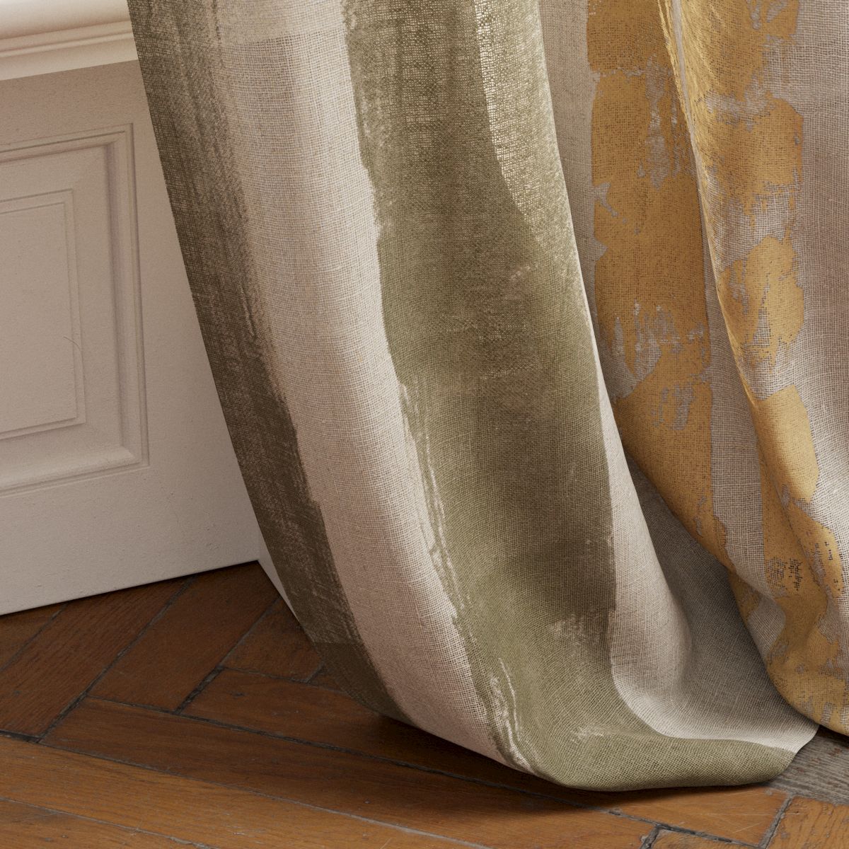 Das Ergebnis ist ein Stoff, der sich wie ein Kunstwerk auf Leinwand präsentiert – ideal für stilvolle Vorhänge, dekorative Kissen oder besondere Raumakzente. Die natürliche Haptik des Leinens verleiht Crafted Stripe einen hochwertigen, handgemachten Charakter, der jedem Raum Wärme und Persönlichkeit schenkt.