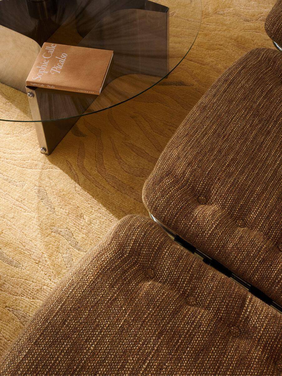 Cuddle UP bietet eine strapazierfähige Bezugsqualität (40.000 Scheuertouren) und eignet sich besonders für runde Möbelformen oder komfortable Sitzgelegenheiten. Die farbenfrohe Palette reicht von warmen Neutrals wie Raffia und Kakao über rötliche Erdtöne bis hin zu intensiven Nuancen wie Indischgelb und Akaziengrün – inspiriert von natürlichen Oberflächen und Oberflächenstrukturen.