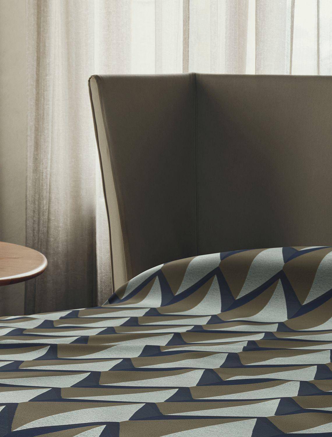 Das aufwendige Jacquard-Gewebe besteht aus 37% Baumwolle, 37% Viskose und 26% Polyester. Die leicht gebürstete Oberfläche sorgt für sanfte Konturen, eine angenehme Haptik und verleiht dem Stoff seine weiche, luxuriöse Textur.