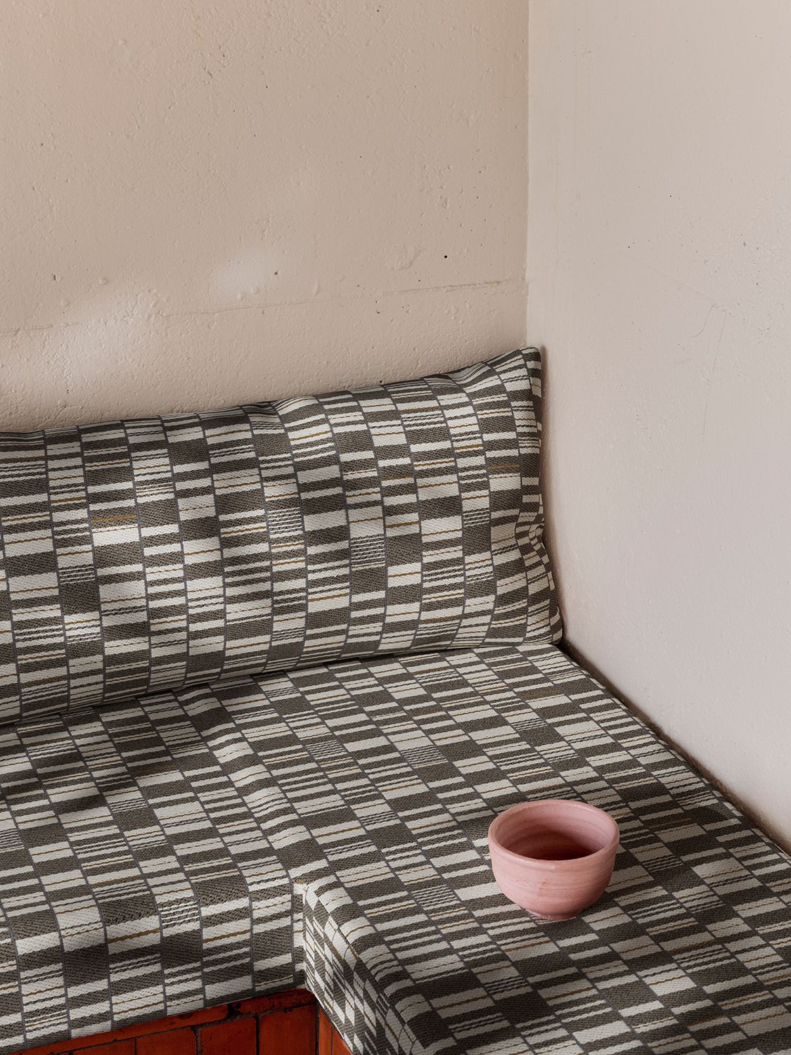 Der Elsworth Polsterstoff von Zimmer + Rohde überzeugt durch sein geometrisches Jacquarddesign, das aus hellen und dunklen Rechteckformen ein rhythmisches Allovermuster erzeugt. Dieses dekorative Design verleiht Möbeln, Kissen oder Accessoires eine moderne und ausdrucksstarke Optik.