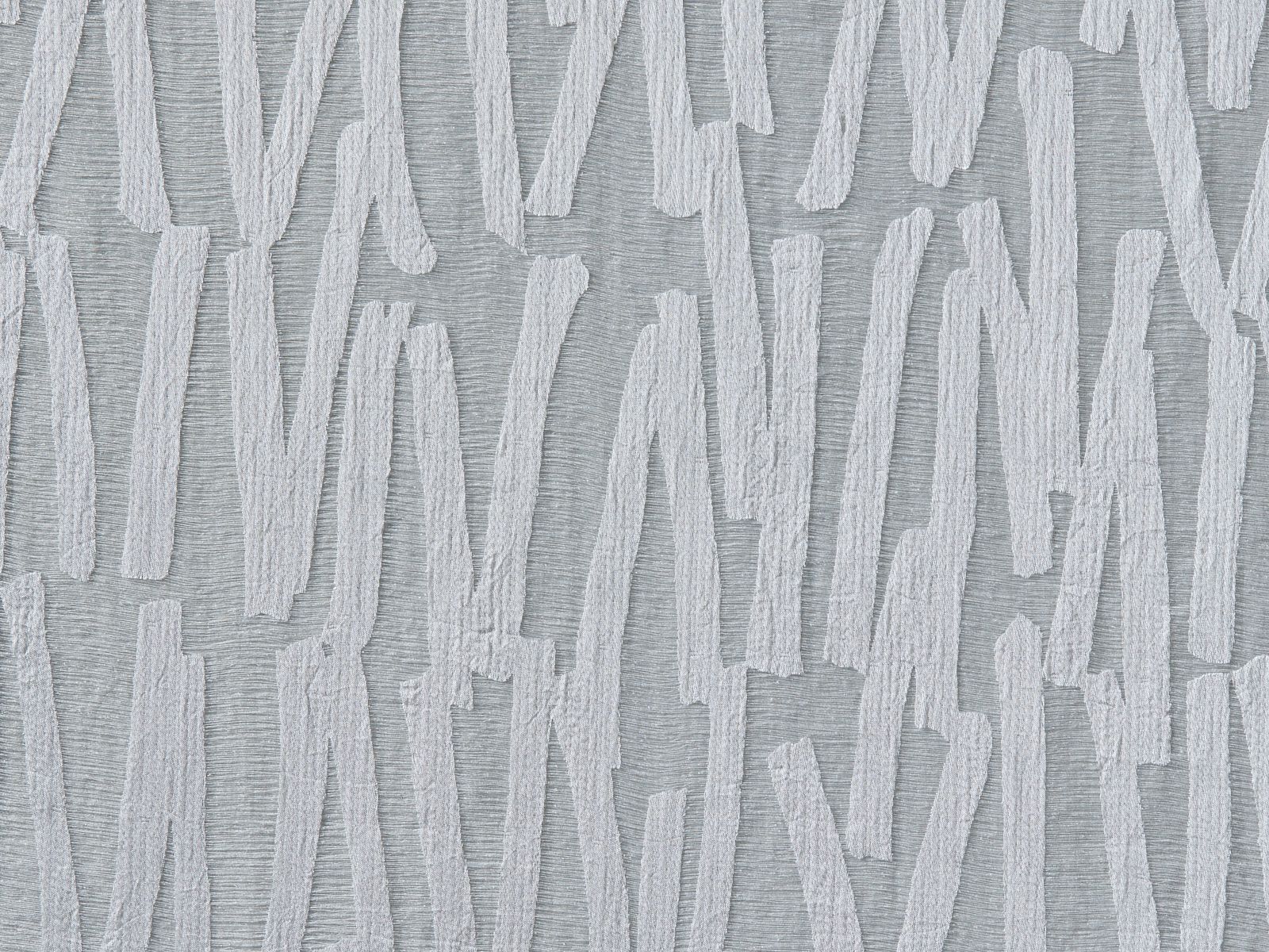 Eine außergewöhnliche Grundware bildet die Basis für den Ausbrenner STROKES. Innerhalb eines transparenten Doppelgewebes bewegen sich lose fixierte Effektgarne. Die verbleibenden Bereiche des Ausbrenners muten wie kräftige, kurze Pinselstriche an, die sich harmonisch über die Fläche dieses raumhohen Artikels verteilen. Um die Lebendigkeit noch zu betonen erhält STROKES einen leichten Crash auf der Oberfläche.