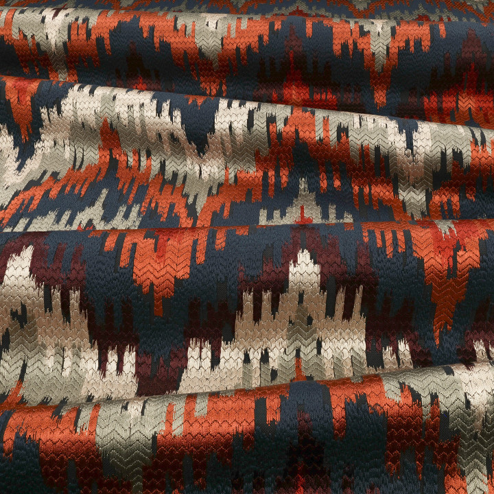 Lansdowne von Zinc ist eine auffällige Flammenstich-Stickerei sorgt für ein auffälliges Muster und kräftige Farben. Eine Mischung aus matten und glänzenden Garnen verleiht dem Muster eine unverwechselbare Bewegung, während Bereiche des Grundstoffs durch die reiche Stickerei hindurchscheinen und Tiefe und Dimension verleihen.