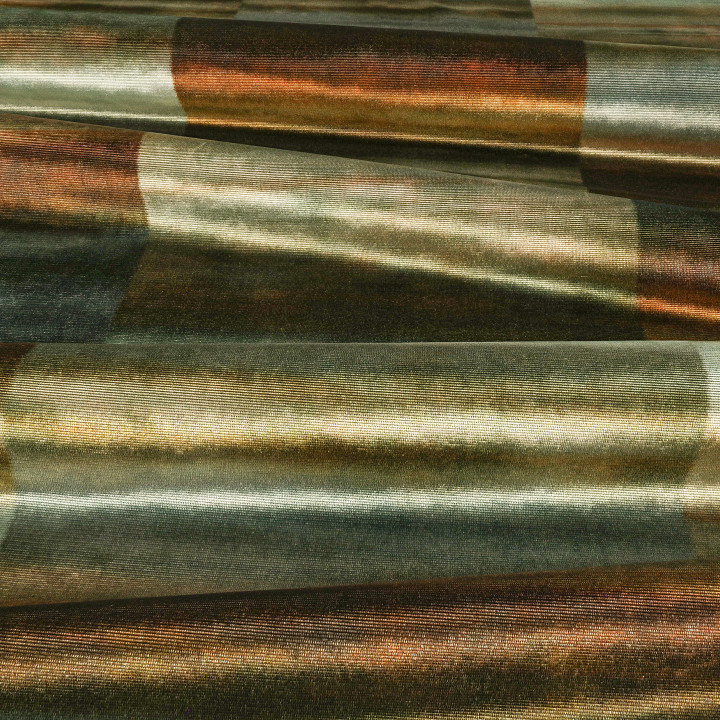Marisa ein Polsterstoff von ZINC aus weichem Samt gerfertigt. Man könnte meinen, dass man dieses Design schon einmal gesehen hat. Inspiriert von der Zorelli-Seidentapete aus der Cazenove-Kollektion, zeichnet sich dieser bedruckte Jacquard-Samt durch eine bewusste Bänderung komplementärer Farben aus, die ein diffuses Streifendesign mit einer einzigartigen Ästhetik schaffen. Der Glanz des Flors lässt die Opulenz der Seide wieder aufleben und verleiht ihr eine willkommene Weichheit.