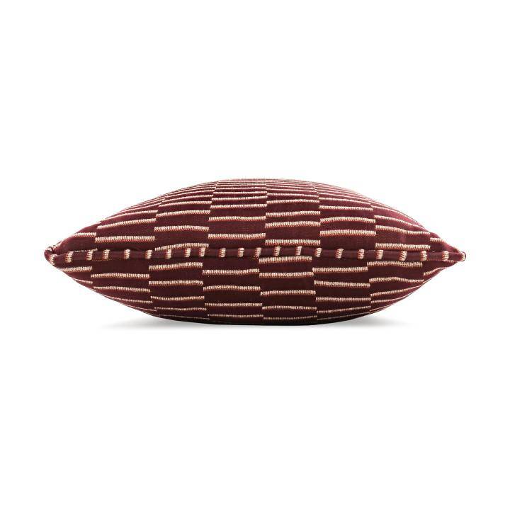 Die sorgfältig abgestimmte Materialmischung aus 51 % Baumwolle, 28 % Polyester, 17 % Polyamid und 4 % Polyacryl sorgt für Stabilität, angenehme Haptik und langlebige Qualität. Das strukturierte Gewebe verleiht dem Kissen eine ausdrucksstarke Oberfläche mit klar definiertem Charakter.