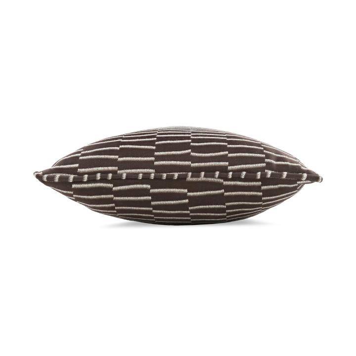 Die Materialkomposition aus 51 % Baumwolle, 28 % Polyester, 17 % Polyamid und 4 % Polyacryl sorgt für Stabilität, angenehme Haptik und langlebige Qualität. Das strukturierte Gewebe unterstreicht die geometrische Formensprache und verleiht dem Kissen eine moderne, textile Tiefe.