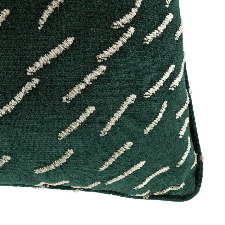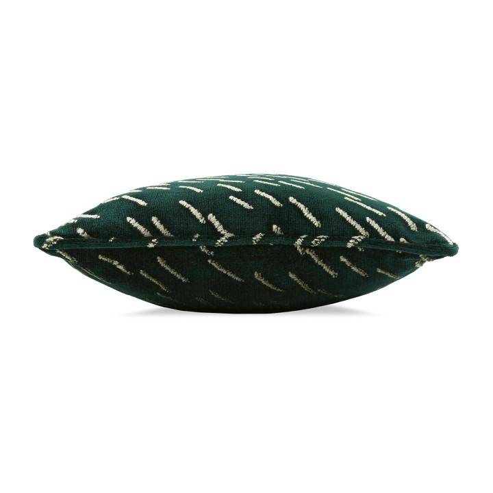 Die Materialkombination aus 61 % Viskose und 39 % Baumwolle sowie einem Flor aus 100 % Viskose sorgt für eine besonders weiche, angenehme Haptik. Der hochwertige Viskose-Samt verleiht dem Kissen einen dezenten Glanz, während das feine Streifenmuster eine moderne und strukturierte Optik schafft.
